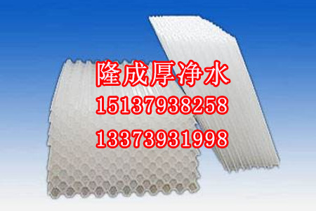 六角形蜂窝填料有斜管和直管两种形式。材质有聚丙烯、聚氯乙烯和玻璃钢三种。